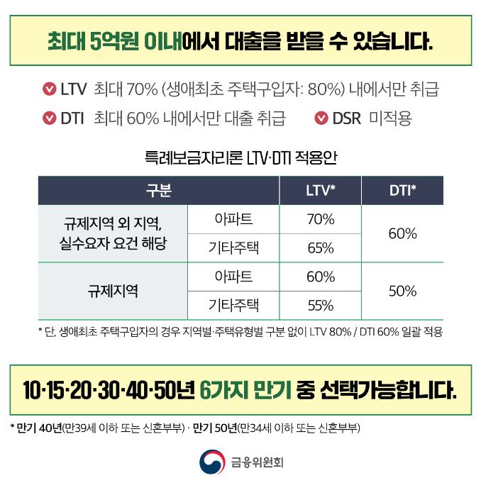 (단, 만기 40년은 만 39세 이하 또는 신혼부부, 만기 50년은 만 34세 이하 또는 신혼부부)